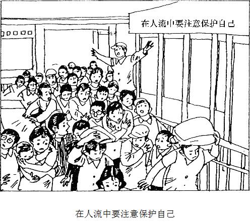 ——如不得已被擠入人流,要防止摔倒;把雙手交叉在胸前保護自己,用肩和背承受外部壓力;隨人流而動,避免被擠到墻壁或柵欄處;
