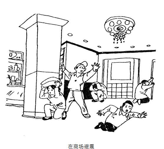 ——選擇結(jié)實的柜臺、商品(如低矮家具等)或柱子邊,以及內(nèi)墻角等處就地蹲下,用手或其他東西護頭;