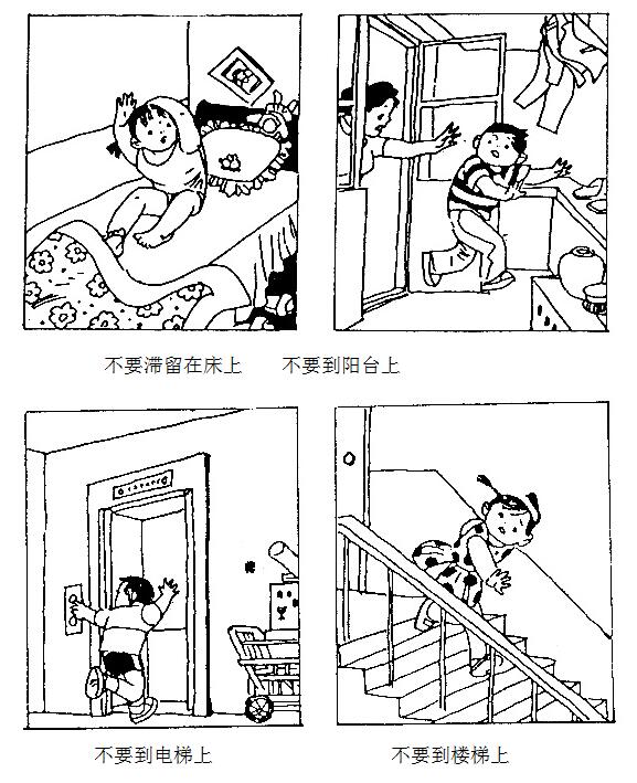 ——不要去乘電梯;如果震時在電梯里,應(yīng)盡快離開;若門打不開要抱頭蹲下,抓牢扶手;