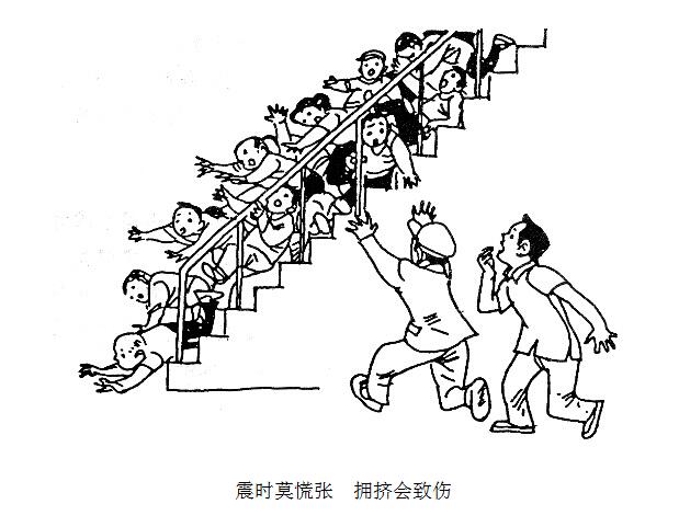 •驚慌失措,震小災(zāi)大:1995年9月,山東省臨沂市蒼山縣發(fā)生5.2級(jí)地震,震級(jí)不算大,震中烈度不到六度,震區(qū)房屋基本完好,本不應(yīng)造成人員傷亡。但是,卻有300多名小學(xué)生受傷,50多人受重傷。原因是人們震時(shí)驚慌失措,因跳樓、擁擠而致傷。