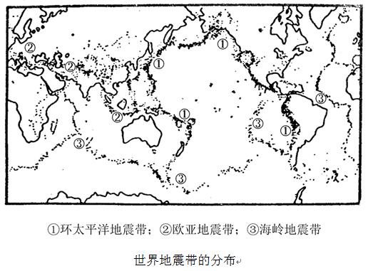 世界上的地震并不是均勻分布的,而是集中出現(xiàn)在一些特定的地區(qū)。從世界震中分布圖上可以看出,全球主要地震活動(dòng)帶有三個(gè):