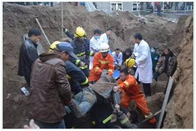 中衛(wèi)市消防支隊指揮中心接到報警后,迅速調(diào)派海原縣消防中隊搶險救援車和12名消防官兵趕到現(xiàn)場救援。因為隨時有二次坍塌的可能,消防官兵只能用鐵鍬等工具挖掘,在接近被困人員時又改為用手刨土,很快找到一名被困工人,當(dāng)時這名工人尚有呼吸且能說話。隨后,消防官兵又刨出另兩名被困工人,只見兩人相擁在一起,一人頭部受傷仍可自主呼吸,另一人呼吸微弱。17時05分,頭部受傷的工人被救出。第三名被困工人由于呈半跪姿勢、右腳卡在管道下,消防官兵用手一點(diǎn)一點(diǎn)刨土,至17時40分將這名工人也救出。遺憾的是,記者從海原縣醫(yī)院了解到,3名被困工人被緊急送醫(yī)后終因搶救無效死亡。