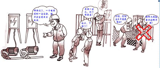 9、現(xiàn)場電工應(yīng)嚴(yán)格遵守操作規(guī)程,維修電氣設(shè)備時應(yīng)盡量斷開電源,驗明單相無電,并在開關(guān)手柄處掛“嚴(yán)禁合閘,有人工作”牌方可工作。未經(jīng)驗電則應(yīng)按帶電作業(yè)的規(guī)定作業(yè)。