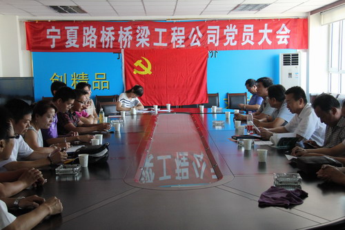 2012年6月30日橋梁工程公司召開黨員大會(huì),大會(huì)對(duì)2011年度優(yōu)秀共產(chǎn)黨員進(jìn)行表彰,并就黨員轉(zhuǎn)正、轉(zhuǎn)為預(yù)備黨員、發(fā)展入黨積極分子等事宜進(jìn)行討論、研究、決定,并組織全體黨員學(xué)習(xí)“寧夏回族自治區(qū)第十一次黨代會(huì)報(bào)告”。