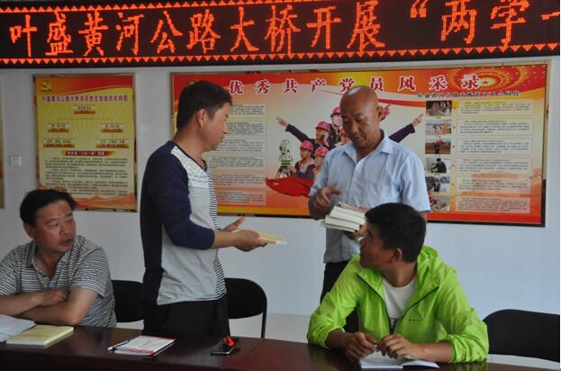 為確保“兩學(xué)一做”學(xué)習(xí)教育取得實(shí)效,6月6日下午,葉盛黃河公路大橋項(xiàng)目黨支部組織項(xiàng)目全體黨員及流動(dòng)黨員進(jìn)行學(xué)習(xí),并為流動(dòng)黨員發(fā)放學(xué)習(xí)書籍及《中國共產(chǎn)黨黨章》手冊(cè),使流動(dòng)黨員過上正常的組織生活。項(xiàng)目經(jīng)理顧龍同志為大家上了題為“高情商、正能量、中國夢(mèng)、做合格的共產(chǎn)黨員”的主題黨課,通過高情商,正能量、中國夢(mèng)三個(gè)方面闡述了如何去做一名合格的共產(chǎn)黨員,受到了大家的高度好評(píng),黨課結(jié)束后黨員們積極發(fā)言,結(jié)合工作實(shí)際,談了各自的體會(huì)。使“兩學(xué)一做”學(xué)習(xí)教育在項(xiàng)目全體黨員中扎實(shí)開展,不走形式,不走過場(chǎng)。