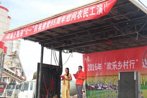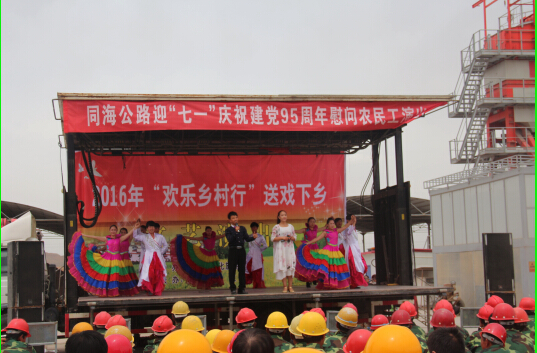 在中國共產(chǎn)黨成立95周年之際,由寧夏路橋公路工程公司同海路A1合同段主辦的“迎‘七一’慶祝建黨95周年慰問農(nóng)民工演出”圓滿結(jié)束。