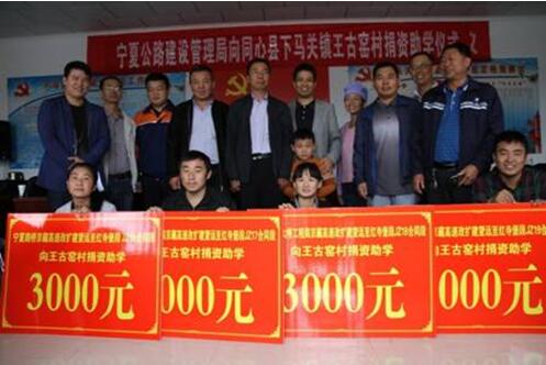 2017年8月29日,寧夏公路建設管理局協(xié)同京藏高速公路改擴建項目望遠至紅寺堡段的四家參建單位代表前往同心縣下馬關鎮(zhèn)王古窯村,對該村今年應屆考取大學本科的四位學生開展了一對一捐資助學活動。寧夏公路建設管理局建設四處副處長馬正紅、辦公室副主任王永堅、建設四處科長暨王古窯村第一書記劉紅強、建設四處科長艾銀強、王古窯村村委干部、四家參建單位代表以及受資助學生和家長共30人參加了此次捐助儀式。
