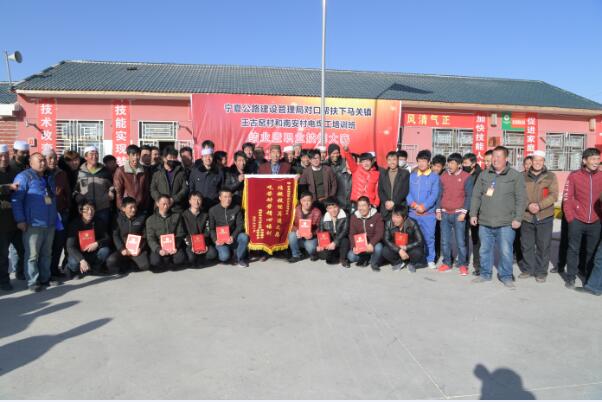 公路建設局黨委書記楊慶在講話中對此次由寧夏路橋職業(yè)技能培訓學校的培訓在王古窯和南安村脫貧致富的過程中所起到的作用給予了充分的肯定,他強調,“扶貧先扶志”,通過職業(yè)技能培訓,增強貧困人口致富的信心和志向,使他們由粗放型向技能型轉變,拓寬了他們就業(yè)的門路,還要扶貧扶智,授人以漁,增加農(nóng)民工就業(yè)技能。