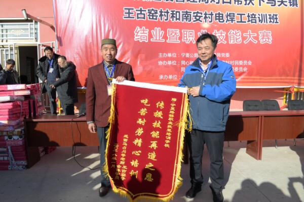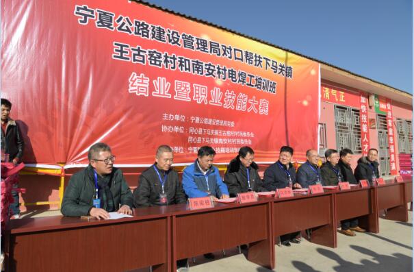 1月22日,同心縣下馬關鎮(zhèn)王古窯村村部院子里人頭攢動,熱鬧非凡;寧夏路橋職業(yè)技能培訓學校承辦的寧夏公路建設管理局對口幫扶下馬關鎮(zhèn)王古窯村和南安村的電焊工職業(yè)技能培訓班結業(yè)暨職業(yè)技能大賽正在進行中。寧夏公路建設管理局黨委書記楊慶、副局長馬洪林、辦公室主任丁新建、建設四處副處長馬正紅等出席培訓班結業(yè)儀式。寧夏路橋公司監(jiān)事會主席鮑學員陪同參加。