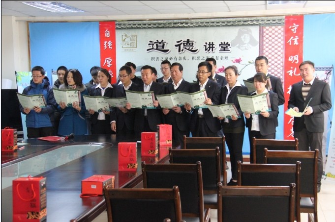 “道德講堂”是以推進(jìn)社會(huì)主義核心價(jià)值體系建設(shè)、弘揚(yáng)傳統(tǒng)美德、樹(shù)立和踐行社會(huì)主義榮辱觀為主線,突出“禮、信、孝、愛(ài)”四個(gè)字,以“身邊人講身邊事,身邊人講自己事,身邊事教身邊人”為主要形式,引導(dǎo)公民“發(fā)善心、做好事、當(dāng)好人、得好報(bào)”,是傳播凡人善舉、引發(fā)道德自覺(jué)、提高自身修養(yǎng)的有效平臺(tái)。通過(guò)“唱歌曲、學(xué)模范、誦經(jīng)典、做點(diǎn)評(píng)、送吉祥”等五個(gè)環(huán)節(jié)讓大家自我修行、自我提升,洗心凈心。