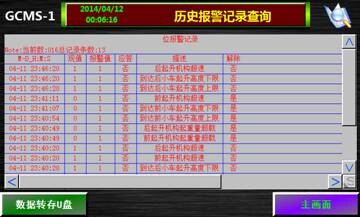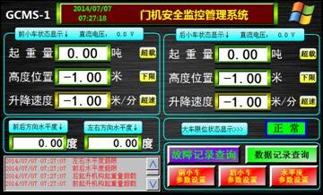 主控制箱的人機界面采用7寸彩色工業(yè)觸摸屏,具有清晰度高,操作靈敏,性能穩(wěn)定可靠,支持外接U盤存儲故障記錄等特點。能夠采集通訊信號,處理數(shù)據(jù),顯示及控制輸出,可監(jiān)控起重機的起重量、起升高度、運行行程、主梁傾斜角度等常規(guī)工況參數(shù),到達極限位置或臨界值時會報警并切斷相關電路控制回路。