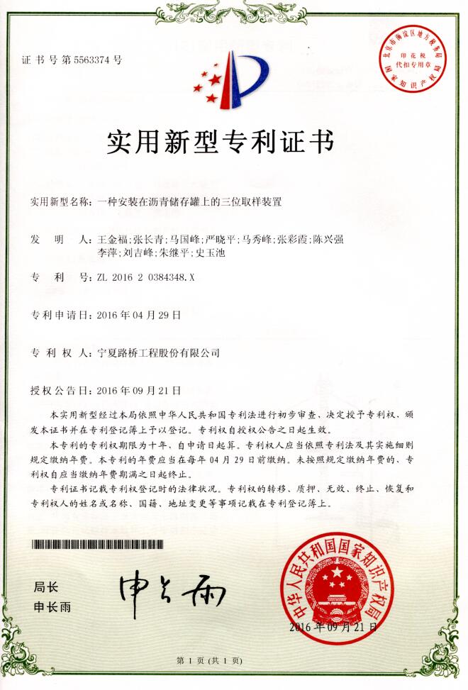 發(fā)明專利證書:一種承重用雙剪式千斤頂
