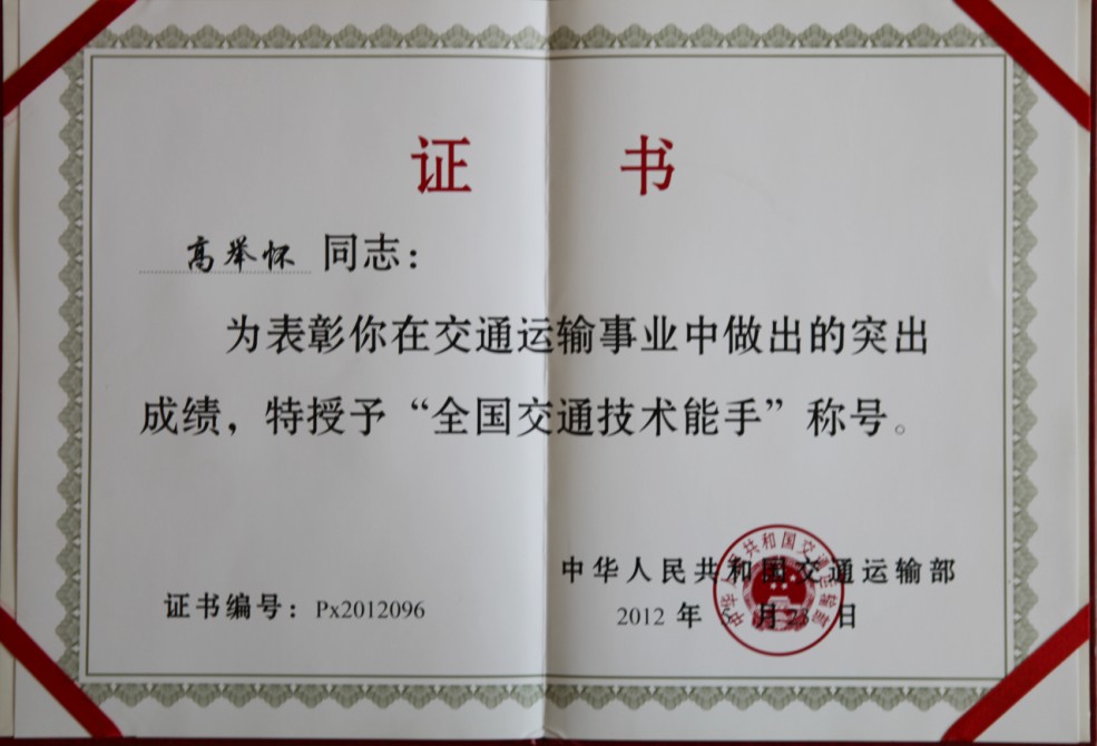全國(guó)交通技術(shù)能手 高舉懷