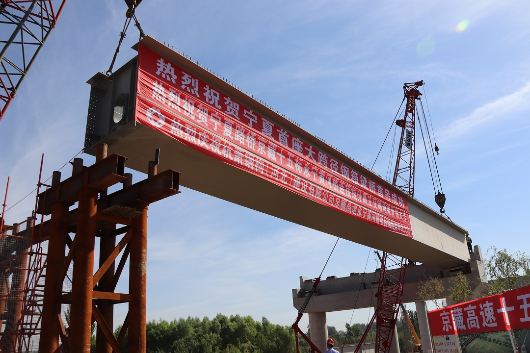 8月10日上午9時(shí)許,京藏高速公路改擴(kuò)建第JZ15標(biāo)施工現(xiàn)場(chǎng)彩煙騰空而起,鞭炮聲響徹云霄;經(jīng)過(guò)32分鐘緊鑼密鼓的作業(yè),永寧黃河連接線分離式立交鋼箱梁成功安裝。作為寧夏首座大跨徑鋼砼疊合梁橋首段鋼箱梁的成功吊裝,標(biāo)志著京藏高速公路改擴(kuò)建第JZ15標(biāo)結(jié)構(gòu)物工程施工步入新的階段。