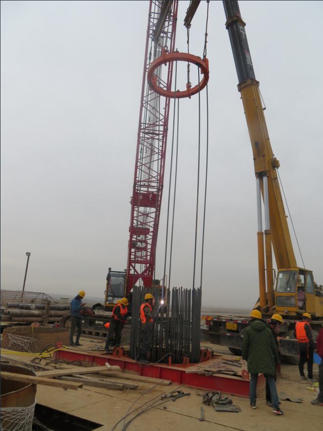 該標(biāo)段主要承建變寬段引橋、跨堤段引橋、西岸灘地引橋和黃河主橋施工,其中樁基礎(chǔ)施工難度最大的當(dāng)屬主橋部分的196根水下2m-2.3m變截面樁基,它的有效樁長是85m,上部20m為變截樁長,對(duì)現(xiàn)場(chǎng)施工作業(yè)來說無疑是一個(gè)巨大的施工挑戰(zhàn)。隨著樁基礎(chǔ)施工的進(jìn)展,項(xiàng)目部人員群策群力,涌現(xiàn)出很多四新技術(shù);比如“跟進(jìn)法”鋼護(hù)筒下沉方案、新型泥漿配比搭配強(qiáng)效濾沙機(jī)及自主研發(fā)新型井口定位架等技術(shù)創(chuàng)新,有效縮短了樁基施工的時(shí)間,提高了施工效率,確保樁基工程在較短時(shí)間內(nèi)順利完成,并為后續(xù)工程的順利實(shí)施打下堅(jiān)實(shí)的基礎(chǔ)。