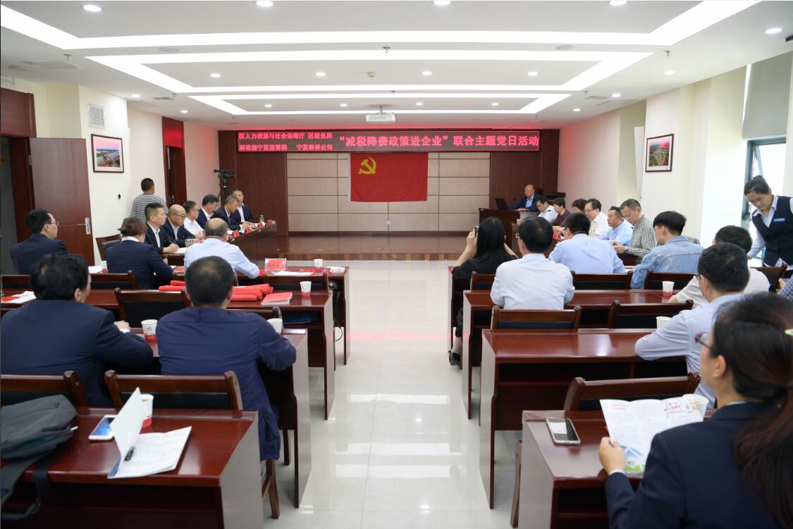 5月22日,自治區(qū)人力資源和社會(huì)保障廳、自治區(qū)稅務(wù)局、財(cái)政部寧夏監(jiān)管局與寧夏路橋公司聯(lián)合開展題為“減稅降費(fèi)政策進(jìn)企業(yè)”主題黨日活動(dòng),自治區(qū)人社廳、稅務(wù)局、財(cái)政部寧夏監(jiān)管局及寧夏路橋公司各支部黨員共60余人參加活動(dòng)。