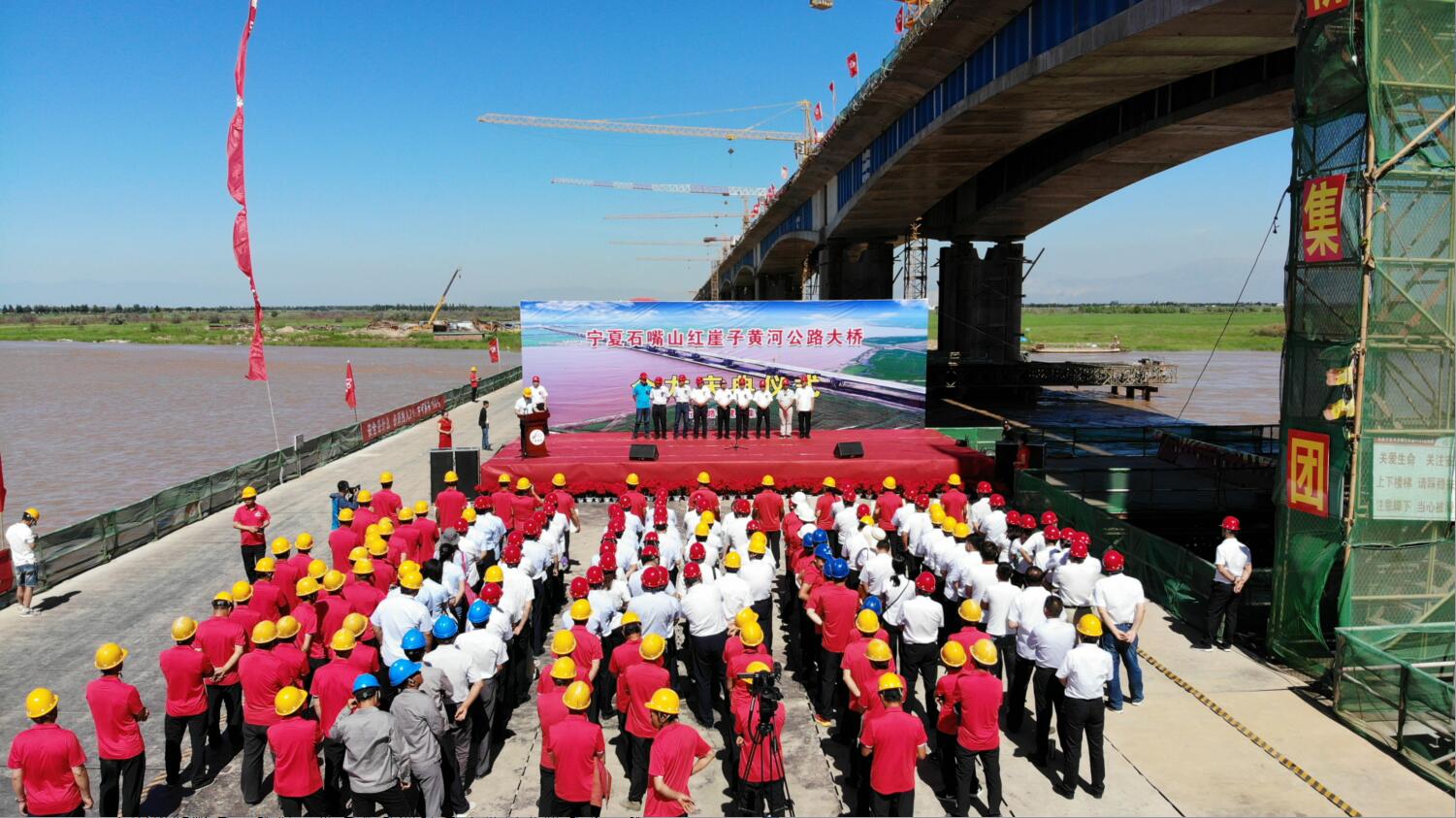 主持人首先向與會嘉賓介紹了出席慶典儀式的各單位領(lǐng)導(dǎo),對大橋建設(shè)情況進(jìn)行了簡要介紹。紅崖子大橋項目經(jīng)理作為施工方代表作了發(fā)言,他向?qū)Υ髽蚪ㄔO(shè)給予關(guān)懷和支持的政府部門、建設(shè)單位、設(shè)計單位、監(jiān)理單位及農(nóng)民工表示了感謝和敬意。最后,抗美倉宣布紅崖子黃河大橋合龍,現(xiàn)場禮炮齊鳴、掌聲不斷。紅崖子黃河公路大橋的順利合龍,在寧夏路橋建橋史上具有重要的里程碑意義,也是寧夏路橋人為建黨98周年、建國70周年獻(xiàn)上的一份厚禮。