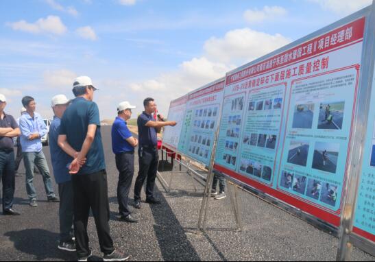 7月17日,寧夏交通投資集團(tuán)總經(jīng)理胡東升、銀百高速公路建設(shè)管理有限公司董事長閆志鵬一行在集團(tuán)副理事長柳建新的陪同下,蒞臨由我集團(tuán)承建的銀百Ⅰ標(biāo)、Ⅱ標(biāo)檢查指導(dǎo)工作。