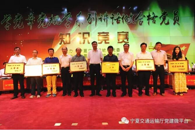 本次知識(shí)競(jìng)賽由廳黨委主辦、寧夏道路運(yùn)輸管理局承辦,來(lái)自廳屬各單位黨委和聯(lián)系企業(yè)黨委的9支代表隊(duì)參加了競(jìng)賽。競(jìng)賽緊張激烈,嚴(yán)肅活潑,氣氛熱烈,精彩紛呈。經(jīng)過激烈角逐,寧夏道路運(yùn)輸管理局代表隊(duì)獲一等獎(jiǎng),交通運(yùn)輸廳機(jī)關(guān)黨委、寧夏公路建設(shè)管理局代表隊(duì)獲二等獎(jiǎng),寧夏天豹汽車運(yùn)輸有限責(zé)任公司、寧夏公路管理局、寧夏路橋工程股份有限公司代表隊(duì)獲三等獎(jiǎng),寧夏道路運(yùn)輸管理局獲優(yōu)秀組織獎(jiǎng)。