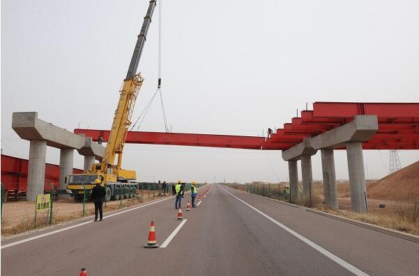 銀百三標(biāo)正在進(jìn)行跨定武高速公路大橋鋼架梁安裝