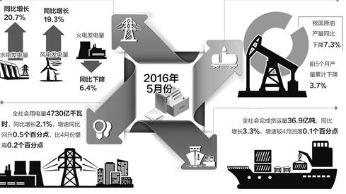“煤電油運(yùn)”是衡量宏觀經(jīng)濟(jì)運(yùn)行的重要指標(biāo)。國家發(fā)展改革委秘書長李樸民說,5月份發(fā)用電量繼續(xù)保持小幅增長,通過發(fā)電、用電數(shù)據(jù)的變化,可以反映出經(jīng)濟(jì)結(jié)構(gòu)調(diào)整和轉(zhuǎn)型升級效果繼續(xù)顯現(xiàn)。